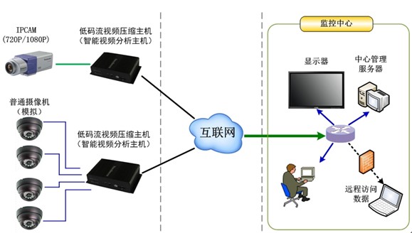 隨著監(jiān)控技術(shù)的快速發(fā)展,高清視頻監(jiān)控已經(jīng)逐步成為了主流的應(yīng)用方向,D1(704*576像素),720P,1080P等分辨率的監(jiān)控系統(tǒng),隨著設(shè)備成本的下降,已經(jīng)被許多用戶接受并使用,高清晰的視頻畫面能讓用戶對畫面中的細(xì)節(jié)看得更清楚,同時還能的獲得更大視角范圍。但是高清視頻監(jiān)控系統(tǒng)隨之也產(chǎn)生了另一個問題——雖然高清的視頻監(jiān)控系統(tǒng)均采用了H.264的編碼方式,但還是產(chǎn)生了較大的視頻碼流,由此對于視頻傳輸所需的帶寬要求非常高,這使得網(wǎng)絡(luò)傳輸?shù)慕ㄔO(shè)成本大幅增加,同時也使得高清視頻監(jiān)控系統(tǒng)的適用范圍受到了限制。