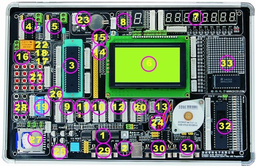 整機由以下數(shù)十個模塊組成,功能強勁令人嘆為觀止!集成了基本上所有單片機應(yīng)用中可能遇到的功能模塊部份,你再也不必要去找其他零件,即可輕松完成您所需要的開發(fā)任務(wù)。我敢打賭這是你目前見到的功能強的51開發(fā)板(其中12864液晶率先成為系統(tǒng)的標準配置。僅此價格即超過百元!同時率先引入sd卡,485通信,can總線,漢字屏等等高端模塊,不象其他板子僅僅只能作幾個跑馬燈,數(shù)碼管實驗)